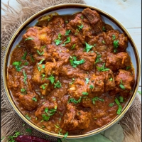 - Slow‑cooked goat with rich masala